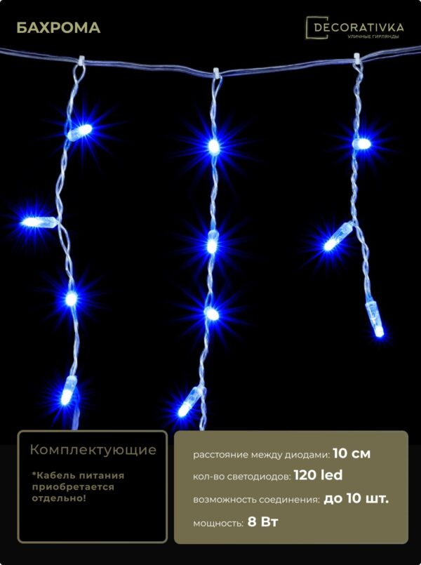 Гирлянда Бахрома 3,1 x 0,5 м Синяя с Мерцанием Белого Диода 220В, 150 LED, Провод Прозрачный ПВХ, IP54