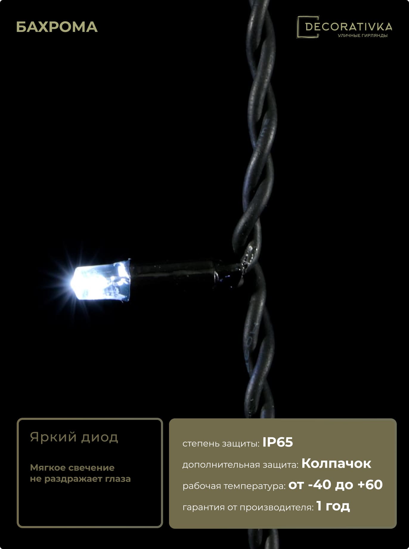 Гирлянда Бахрома 3,2 x 0,9 м Белая с Мерцанием Белого Диода 220В, 168 LED, Провод Черный Каучук, IP65