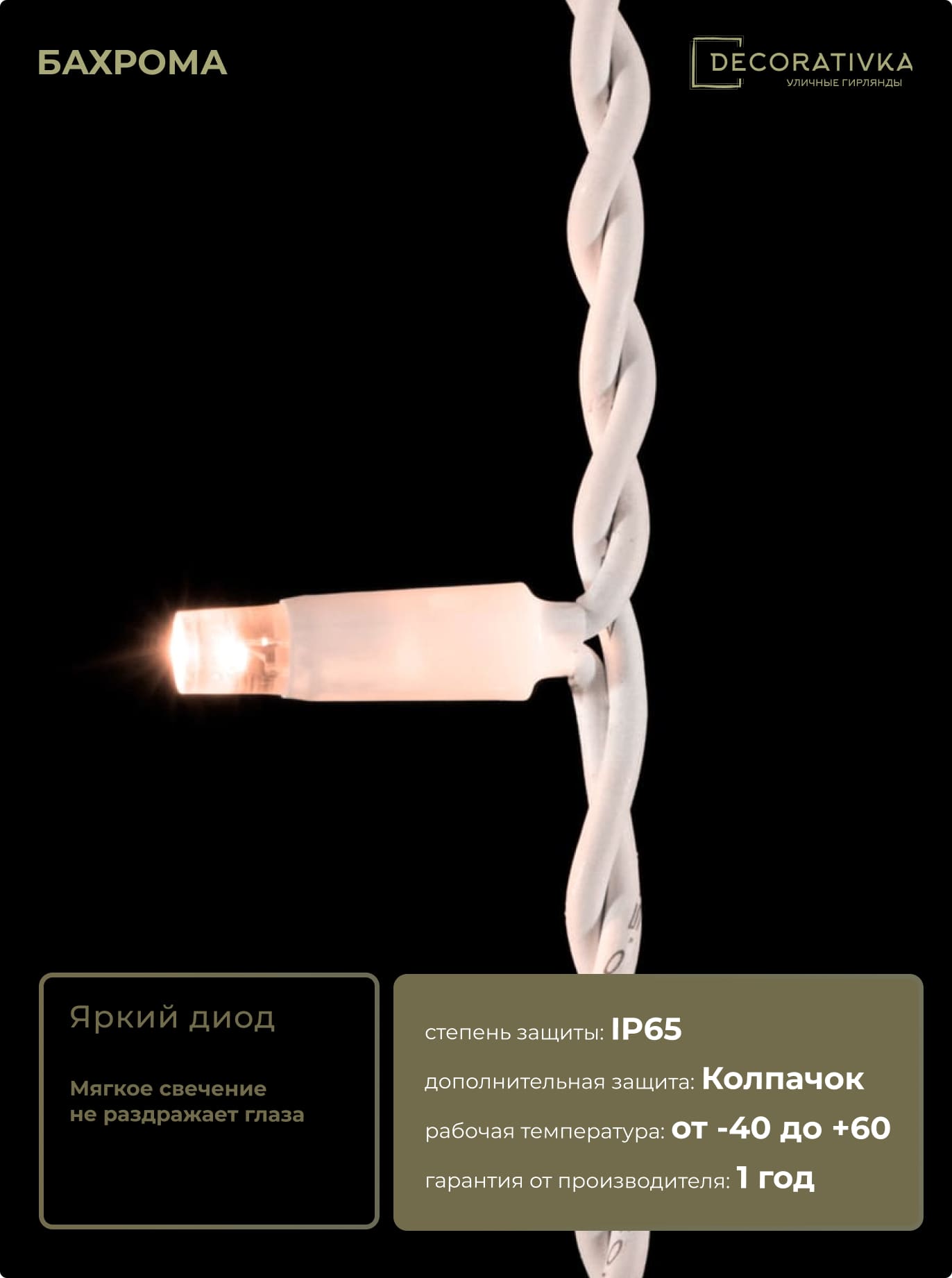 Пример свечения диодов на Гирляндах с проводом Каучук, режим работы - Статика