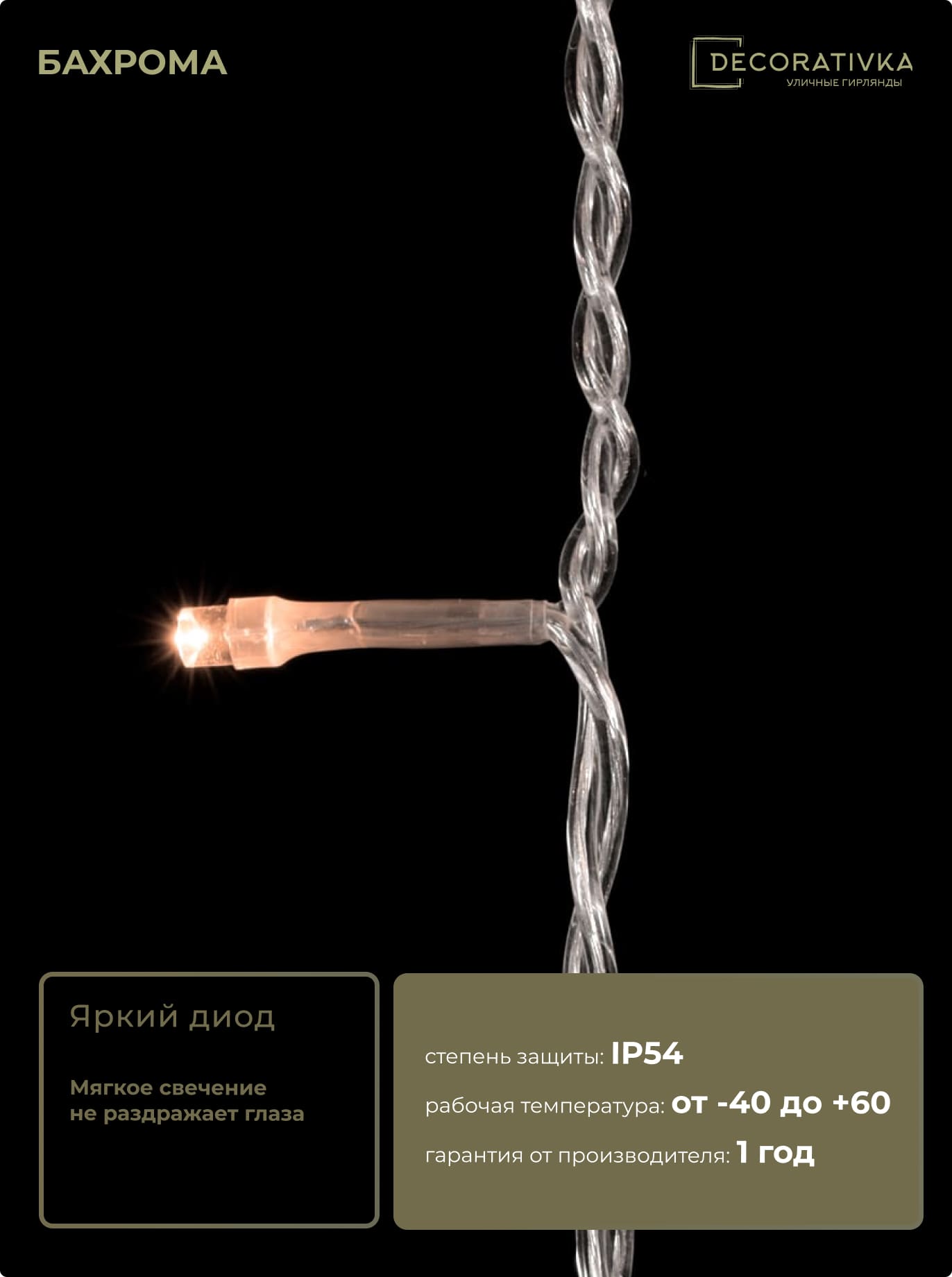 Пример свечения диодов на Гирляндах с проводом ПВХ без колпачка, режим работы - Статика