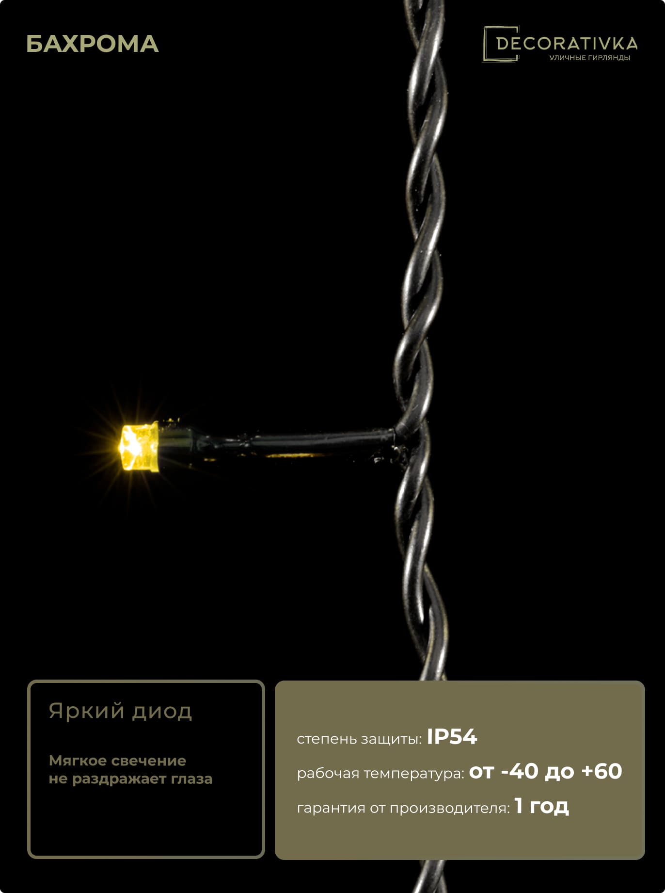 Пример свечения диодов на Гирляндах с проводом Каучук, режим работы - Статика