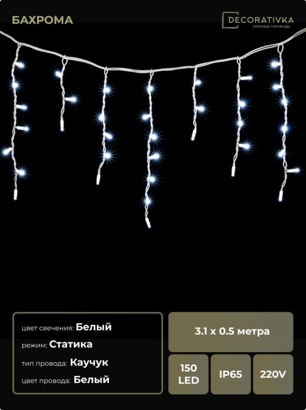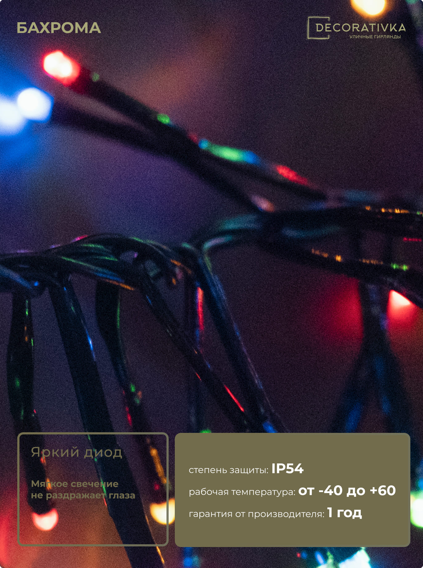 Пример свечения диодов на Гирляндах с проводом Каучук, режим работы - Статика