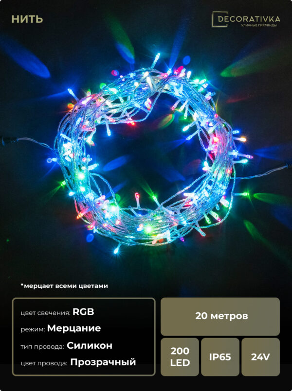 Пример свечения диодов на Гирляндах с проводом ПВХ без колпачка, режим работы - Мерцание