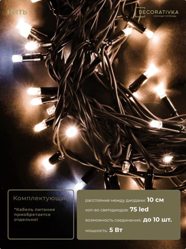 Пример свечения диодов на Гирляндах с проводом Каучук, режим работы - Статика