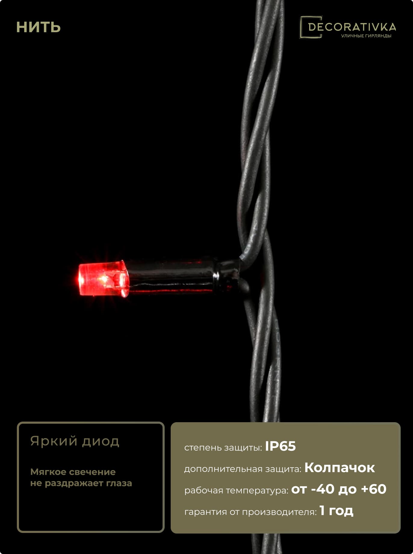 Пример свечения диодов на Гирляндах с проводом ПВХ без колпачка, режим работы - Статика