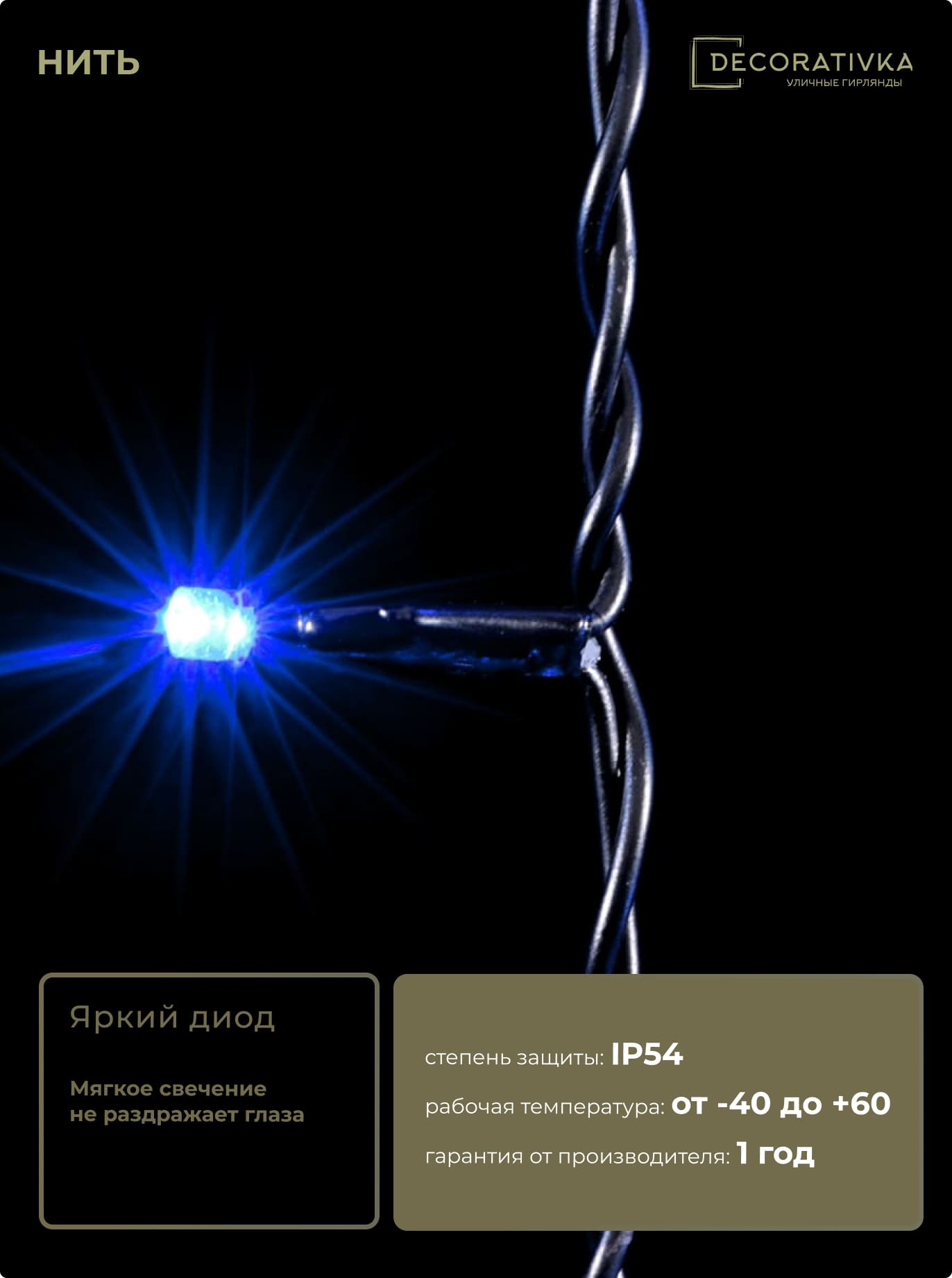 Пример свечения диодов на Гирляндах с проводом ПВХ без колпачка, режим работы - Статика