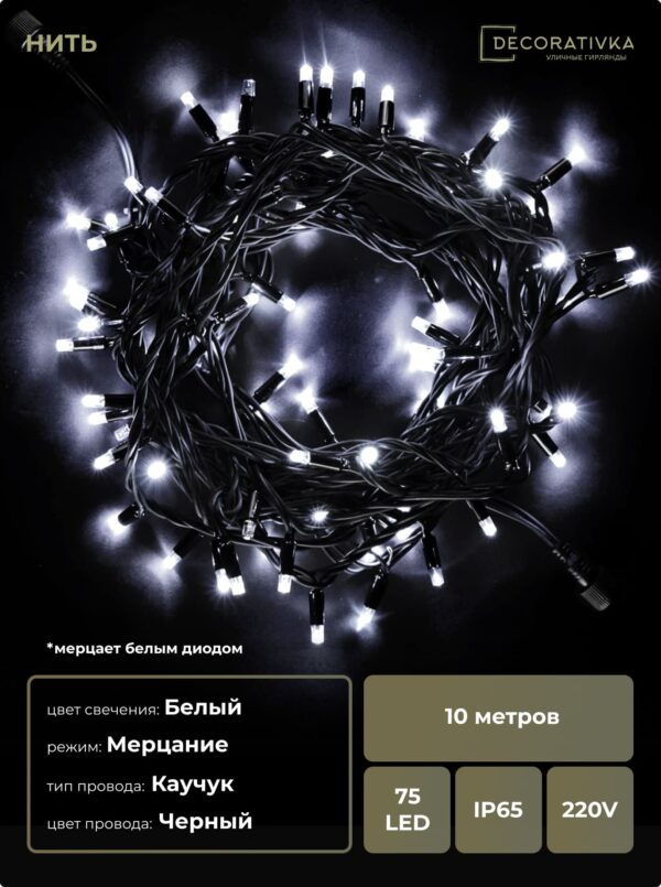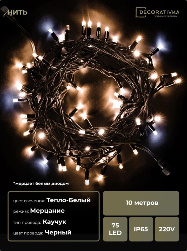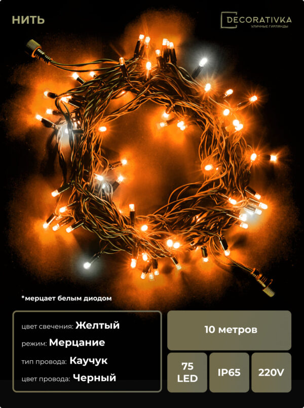 Пример свечения диодов на Гирляндах с проводом Каучук, режим работы - Мерцание
