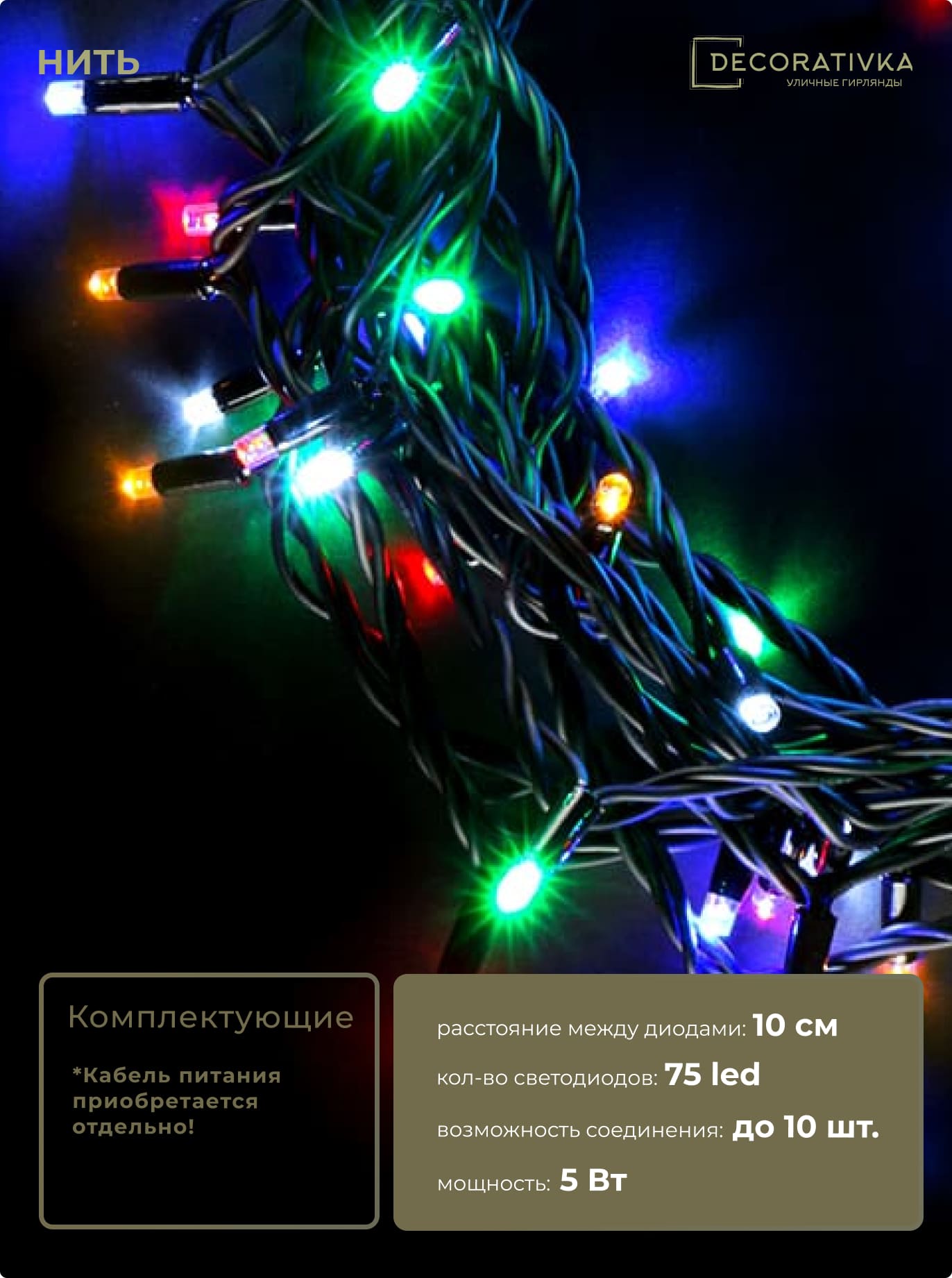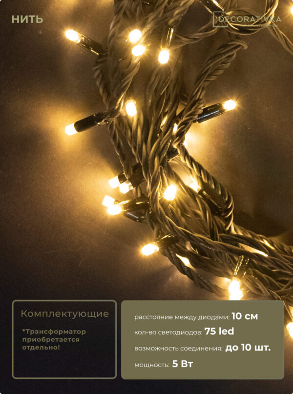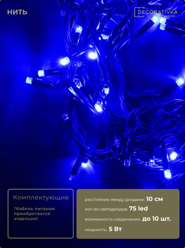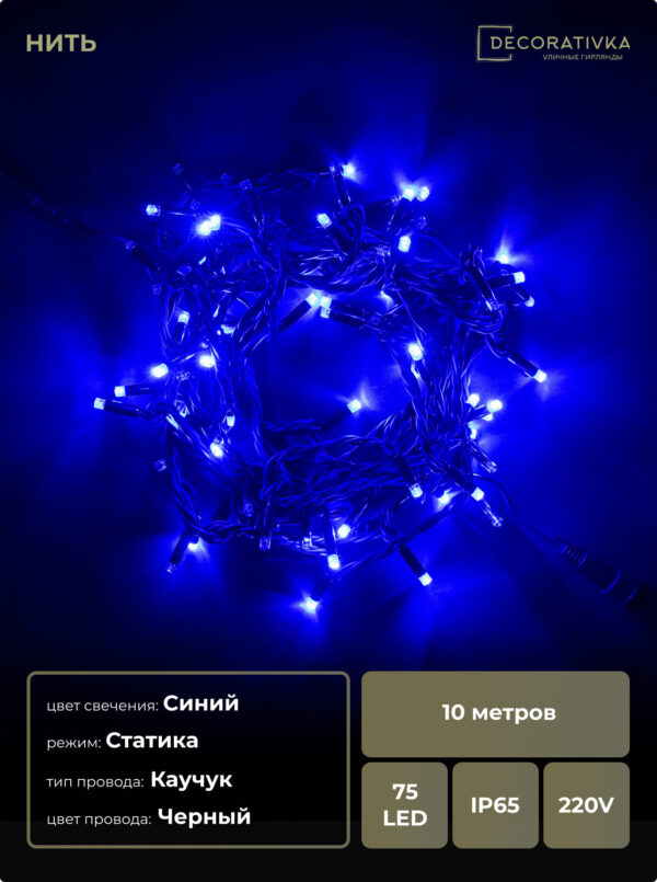 Пример свечения диодов на Гирляндах с проводом Каучук, режим работы - Статика