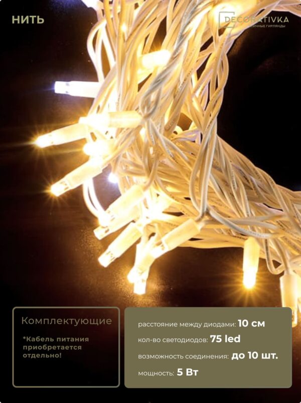 Пример свечения диодов на Гирляндах с проводом Каучук, режим работы - Статика
