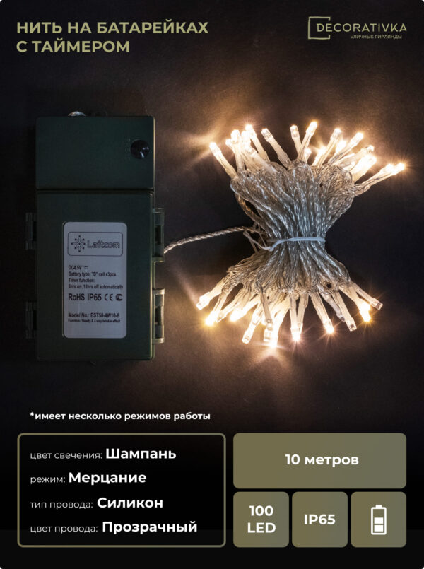 Пример свечения диодов на Гирляндах с проводом ПВХ без колпачка, режим работы - Мерцание