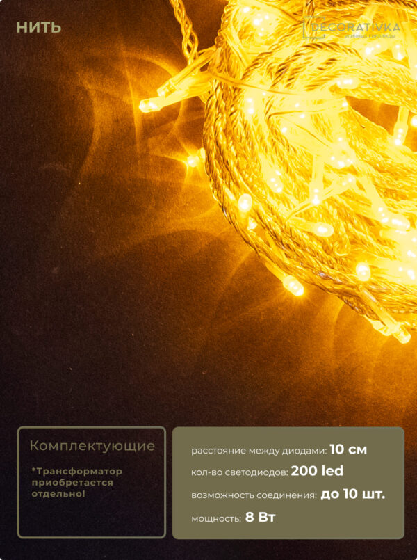 Пример свечения диодов на Гирляндах с проводом Каучук, режим работы - Статика