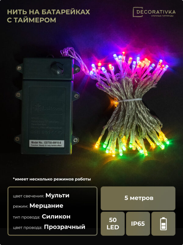 Пример свечения диодов на Гирляндах с проводом ПВХ без колпачка, режим работы - Мерцание