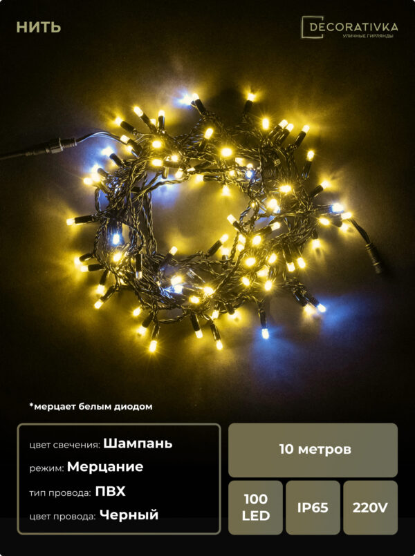 Пример свечения диодов на Гирляндах с проводом ПВХ без колпачка, режим работы - Мерцание