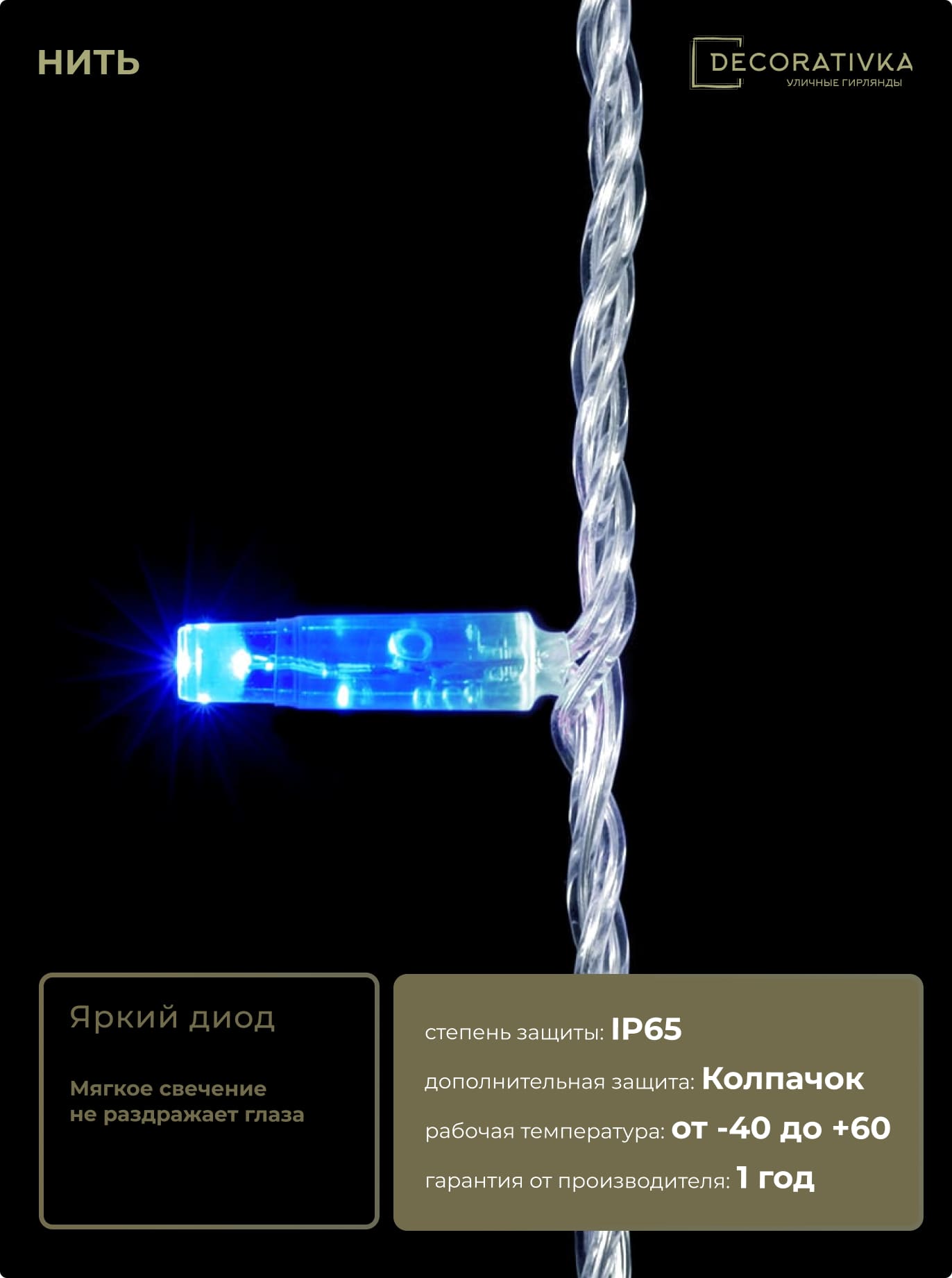 Пример свечения диодов на Гирляндах с проводом ПВХ без колпачка, режим работы - Статика