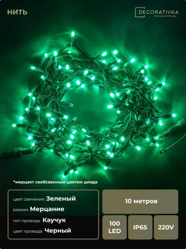 Пример свечения диодов на Гирляндах с проводом Каучук, режим работы - Мерцание
