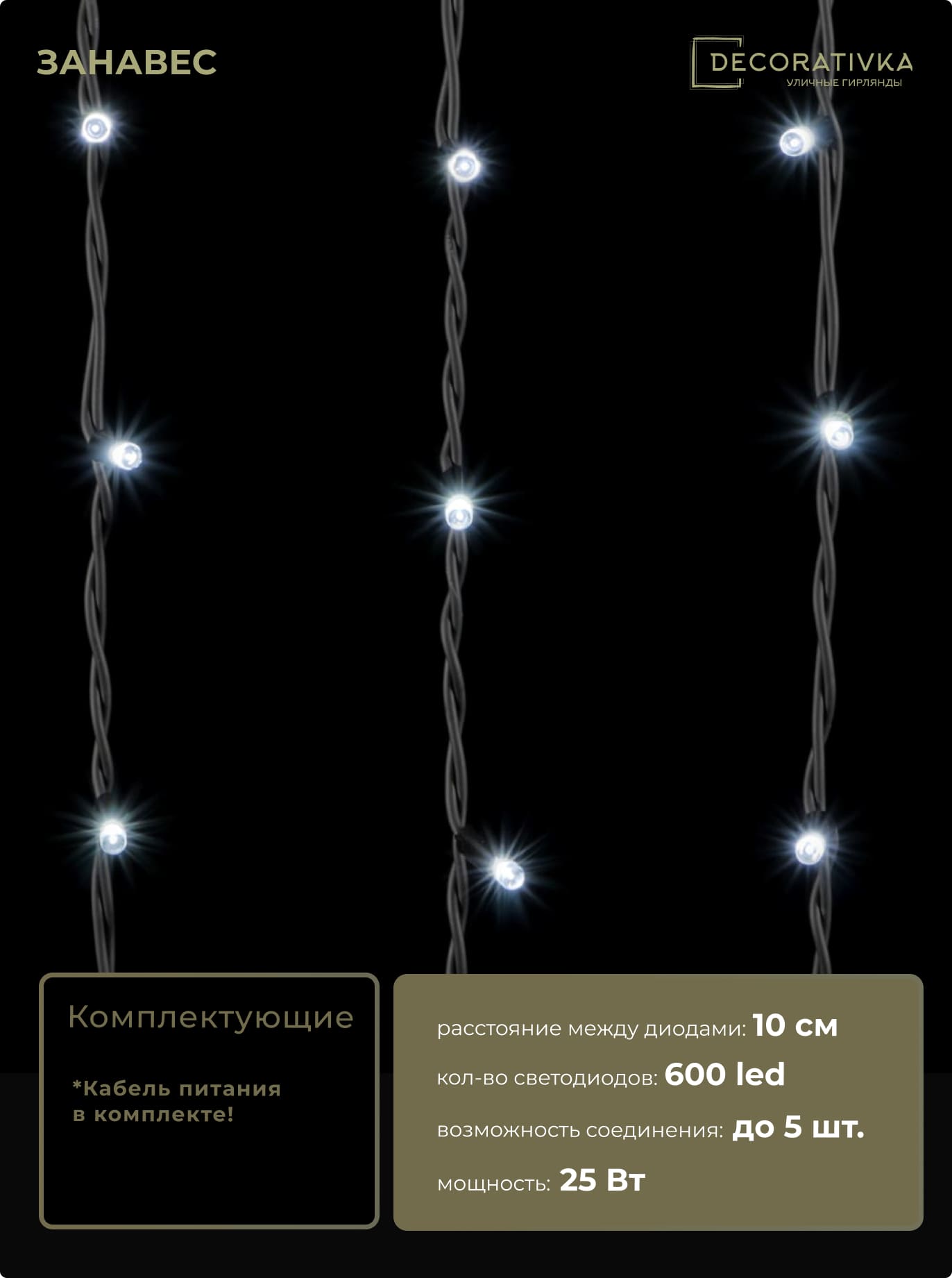 Пример свечения диодов на Гирляндах с проводом Каучук, режим работы - Статика