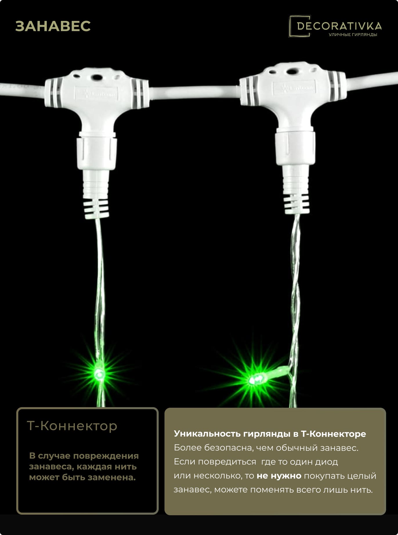 Пример свечения диодов на Гирляндах с проводом Каучук, режим работы - Статика