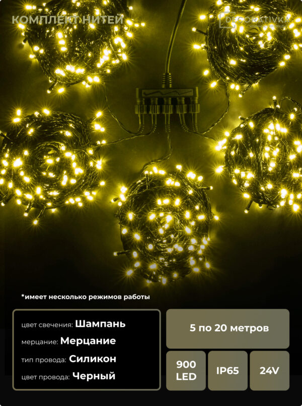 Пример свечения диодов на Гирляндах с проводом Каучук, режим работы - Мерцание
