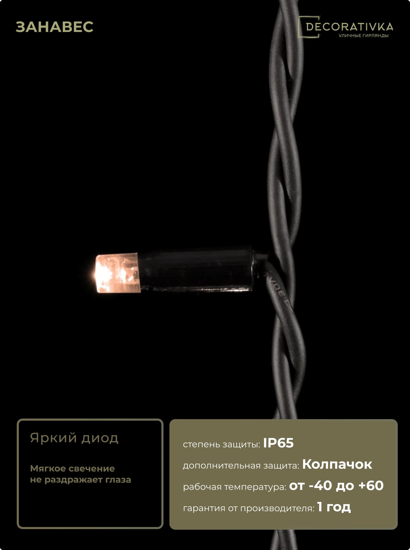 Пример свечения диодов на Гирляндах с проводом ПВХ без колпачка, режим работы - Статика