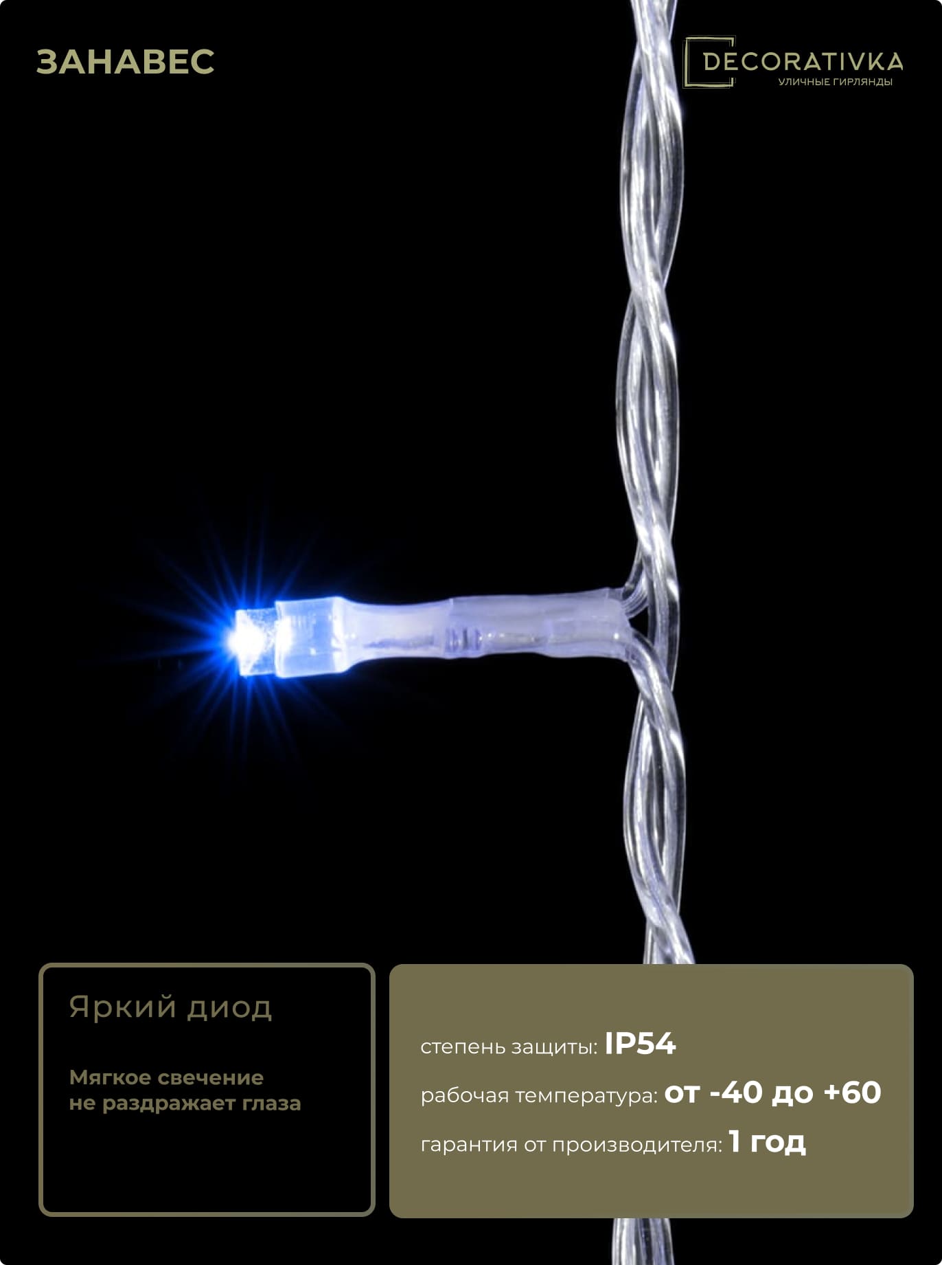 Пример свечения диодов на Гирляндах с проводом ПВХ без колпачка, режим работы - Статика