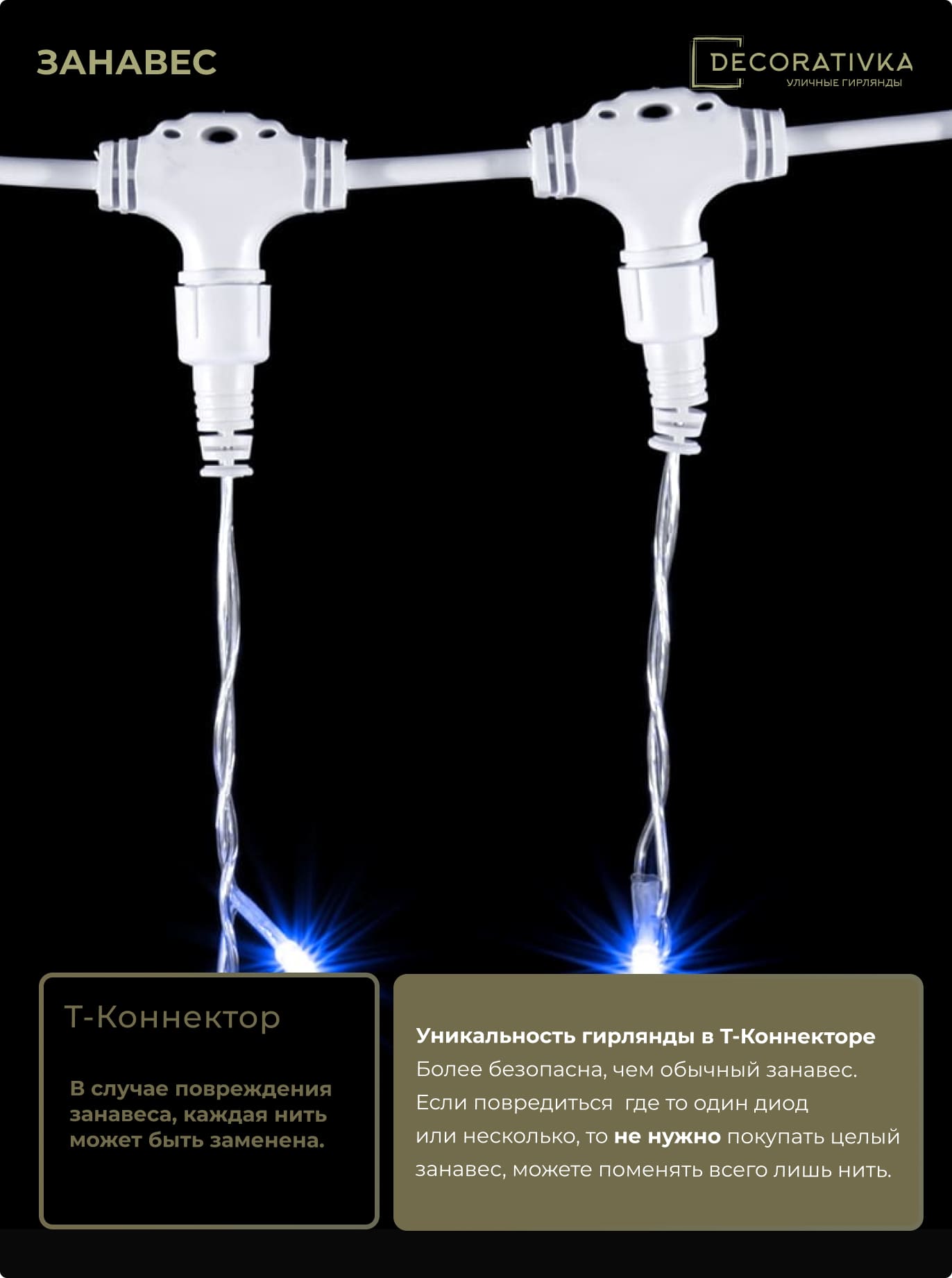 Пример свечения диодов на Гирляндах с проводом Каучук, режим работы - Статика