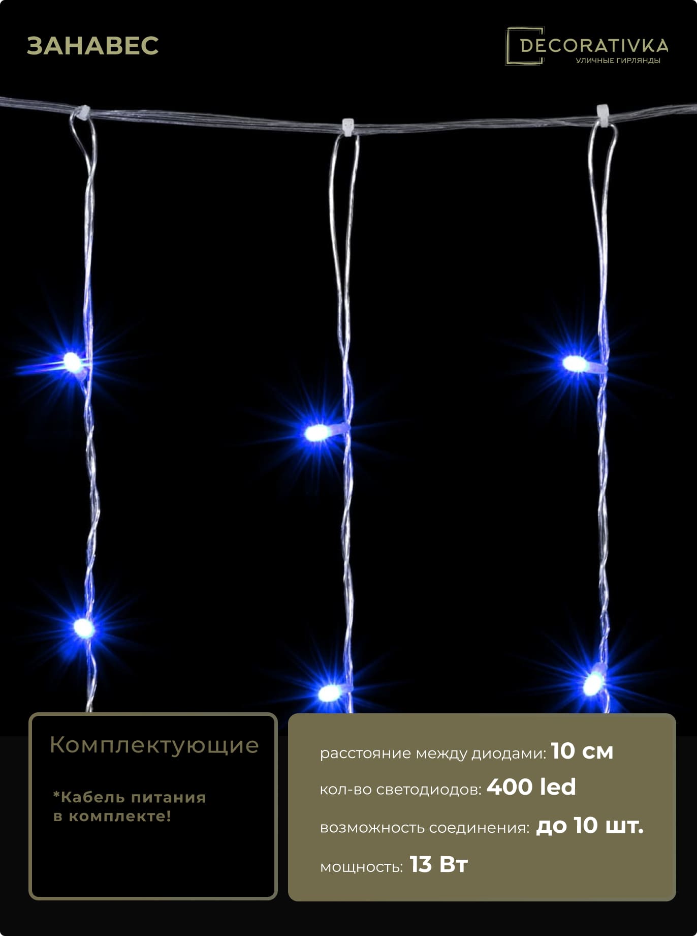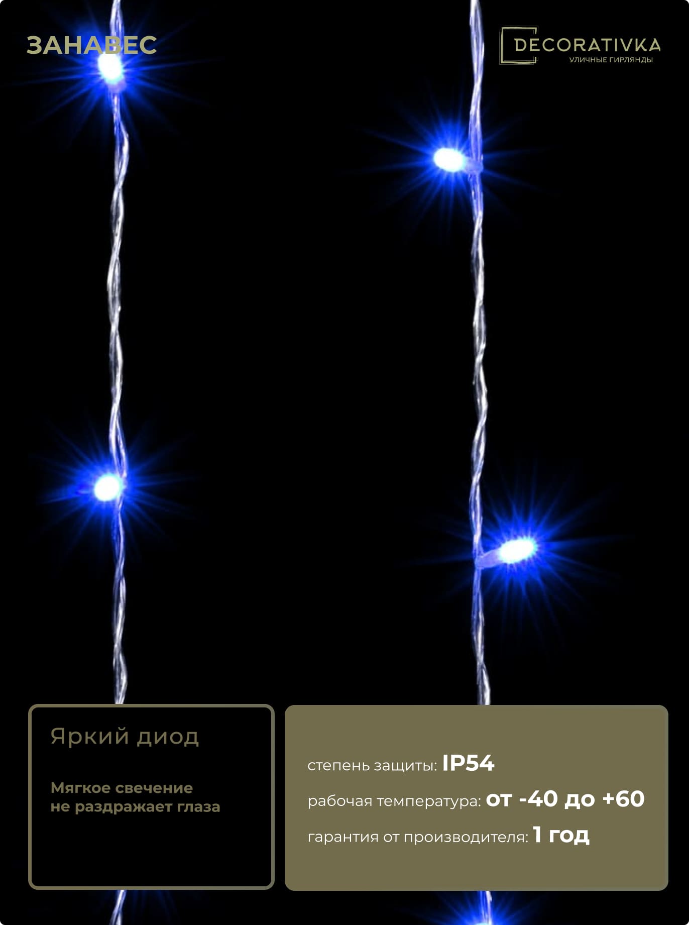 Гирлянда Занавес Облегченный 2 x 2 м Синий 220В, 400 LED, Провод Прозрачный ПВХ, IP54
