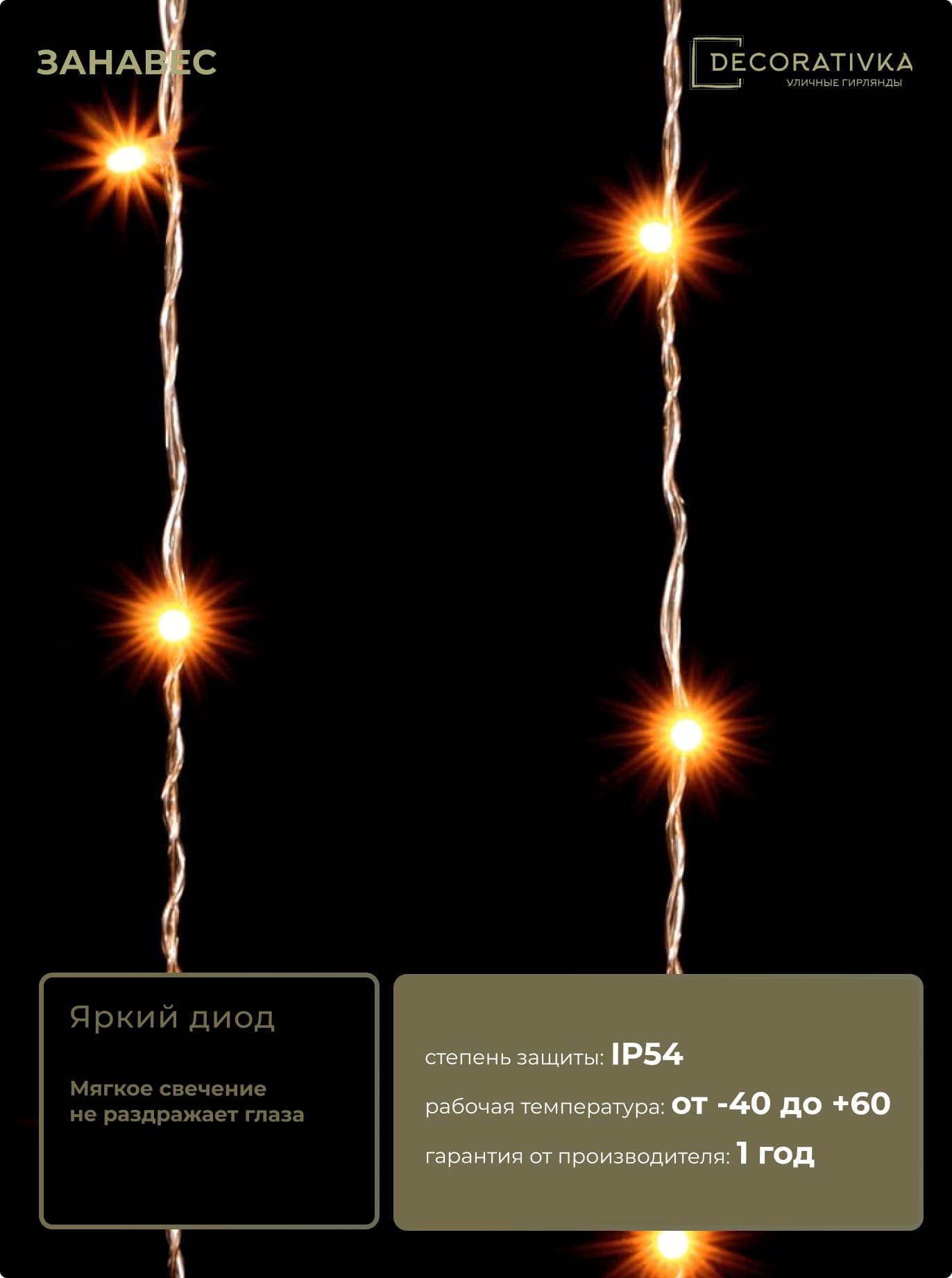 Пример свечения диодов на Гирляндах с проводом ПВХ без колпачка, режим работы - Статика